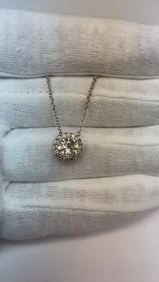 Round Halo Natural Earth Mined Diamond Pendant Necklace 1.65 Carats White Gold 14K