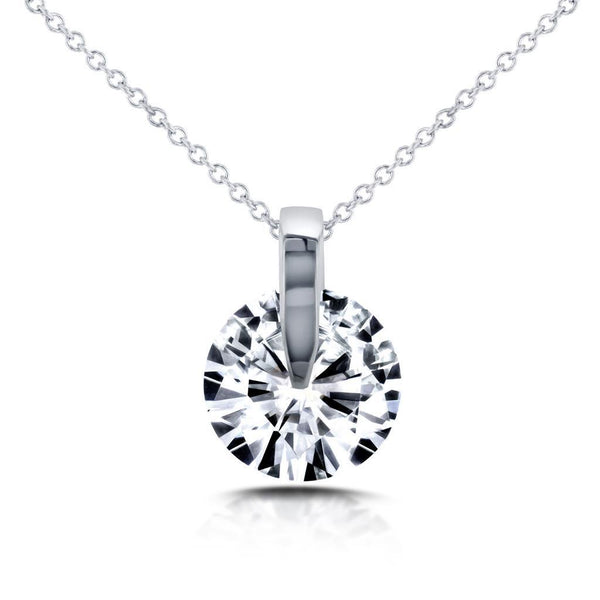 Round Solitaire Lab Grown Diamond Necklace Pendant 2 Carat White Gold 14K