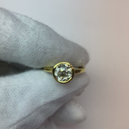 Round Solitaire Ring Old Mine Cut Genuine Natural Earth Mined Diamond Bezel Set 1 Carat Gold 14K