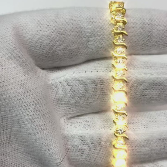 S Style Yellow Gold Real Natural Earth Mined Diamond Bracelet Prong Set 6.60 Carats New