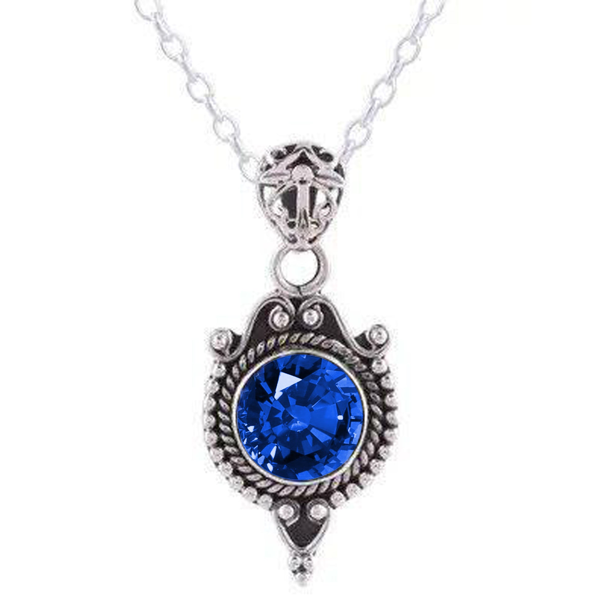 Blue Sapphire Antique Style Pendant 8 Carats White Gold 14K