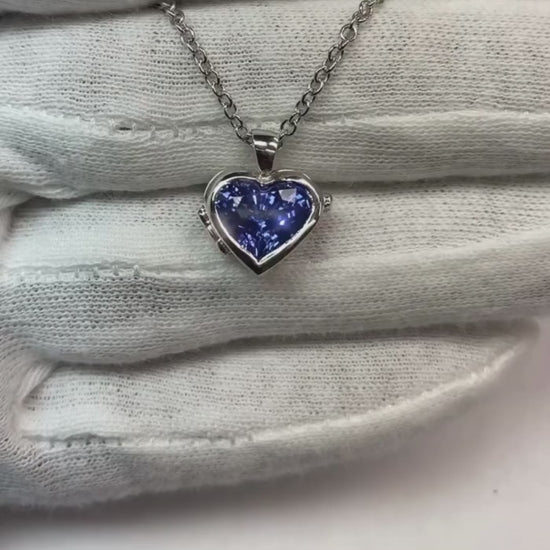 Solitaire Heart Ceylon Sapphire Locket Pendant With Chain 3 Carats