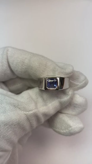 Solitaire Men's Ring 1.50 Carats Flush Set Blue Sapphire Asscher Cut