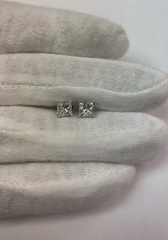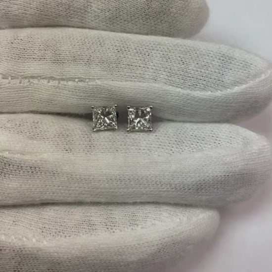Solitaire Princess Cut Natural Earth Mined Diamond Stud Earring 1.70 Carats White Gold