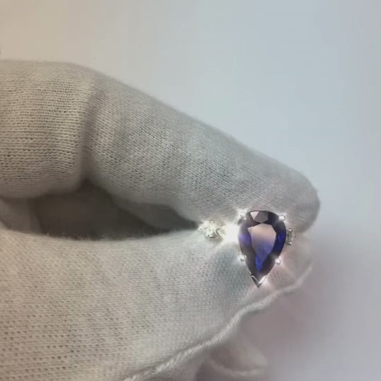 Stone Details : There is one pear cut sapphire approx. 3.50 carats (Approx. Size 12 x 9 mm) and approx. 1 carat of diamonds on the sides. Natural earth mined stones.