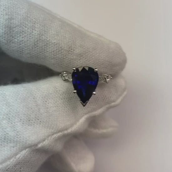 Solitaire Ring With Accents Pear Sri Lankan Sapphire 4.50 Carats