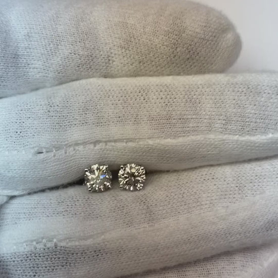 Solitaire Round Cut Real Natural Earth Mined Diamond Stud Earring 1.5 Ct Solid White Gold 14K