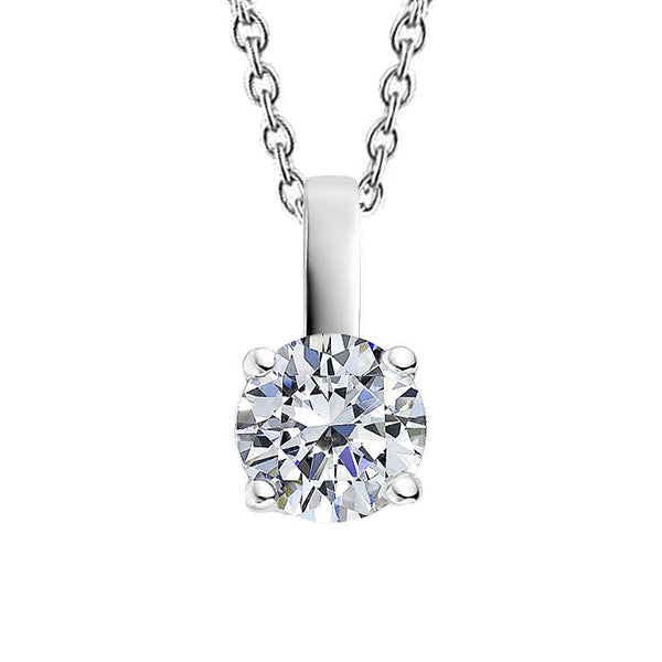 Solitaire Round Cut Lab Grown Diamond Necklace Pendant 2 Carat White Gold 14K