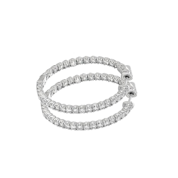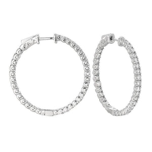 Sparkling 3.25 Carat Round Brilliant Natural Earth Mined Diamond Hoop Earrings WG 14K
