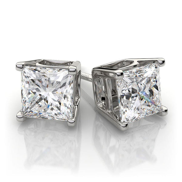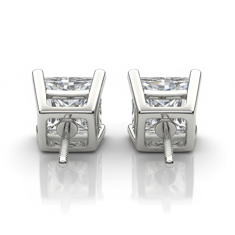 Sparkling CERTIFICATE Princess Cut 5.00 Ct Lab Grown Diamonds Stud Earrings White Gold 14K
