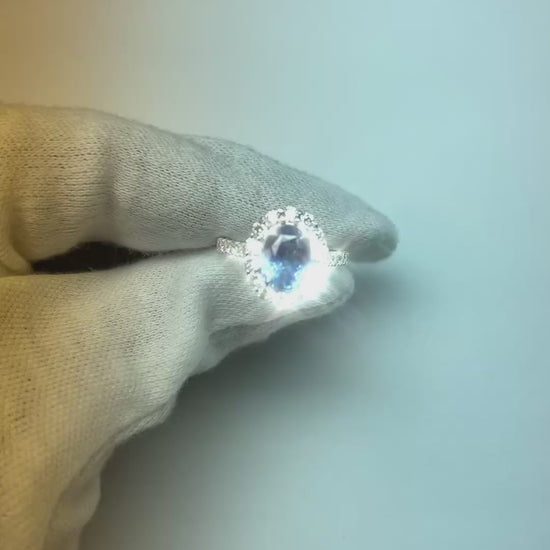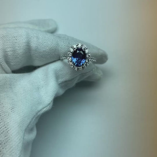 Sri Lanka Blue Sapphire Halo Natural Earth Mined Diamond Ring 4.50 Carats White Gold 14K