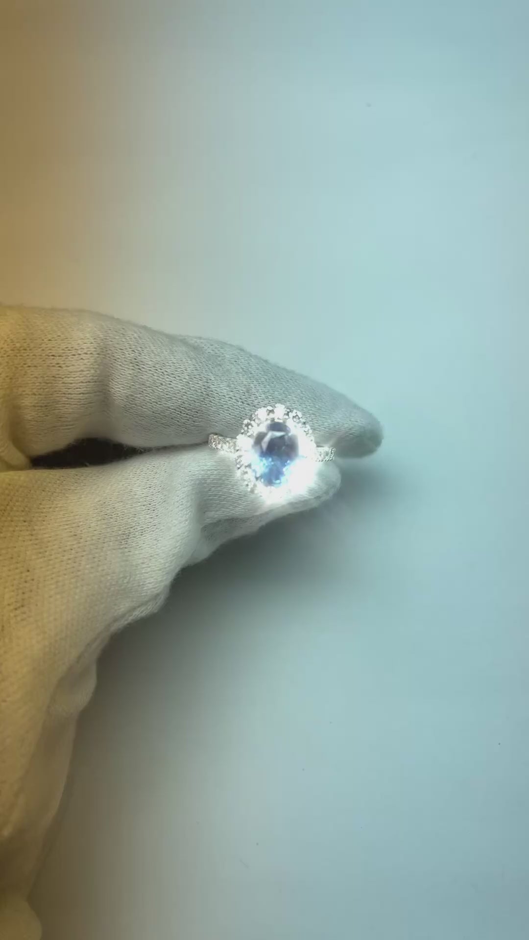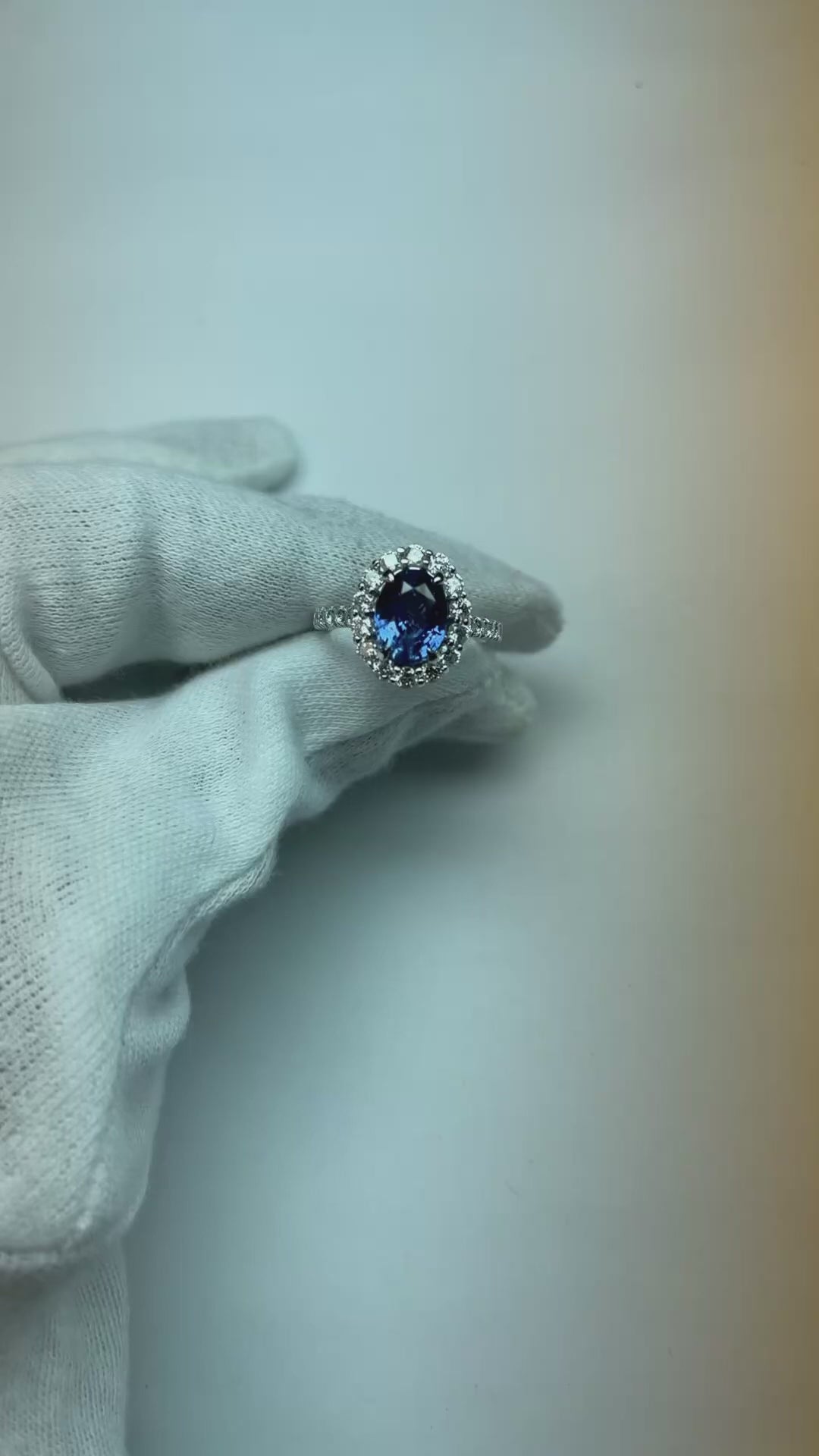 Stone Specifications: There is one blue sapphire in the center of approx. 3.50 carats & approx. 1 carat of smaller round diamonds on the side. Natural earth mined stones.