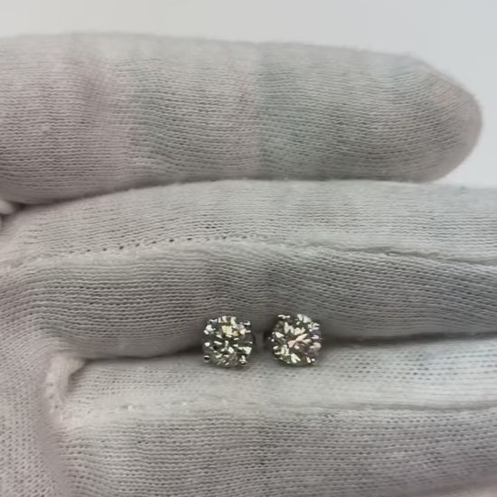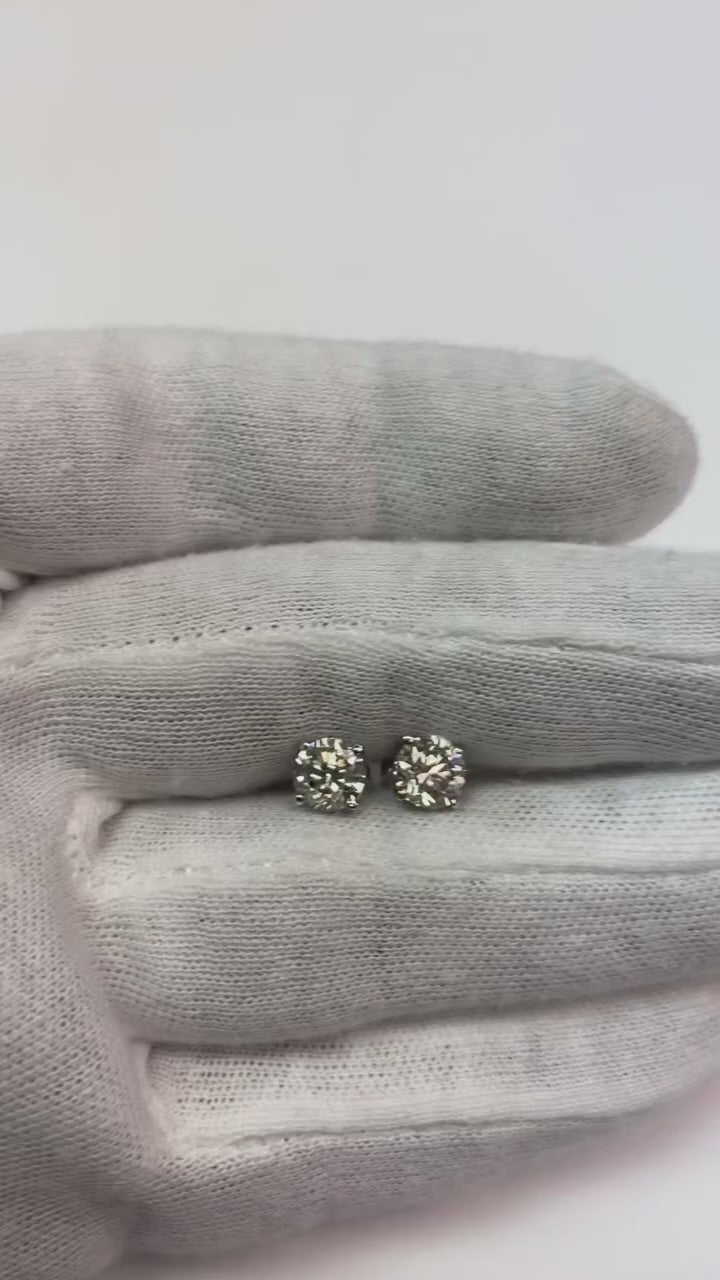 Stone Details : There is one round cut diamond approx. 1 carat (Approx. Diameter 6.3 mm) in each earring. Natural earth mined diamonds.