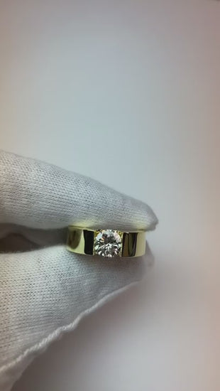 Tension Set Band Yellow Gold 10K Round Diamond 1 Carat Men's Ring
