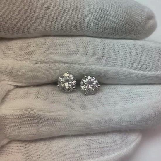 Stone Specifications : There is one diamond in center of approx. 1.75 carats (approx. dia. 7.6 mm) in each earring. Natural earth mined diamonds.