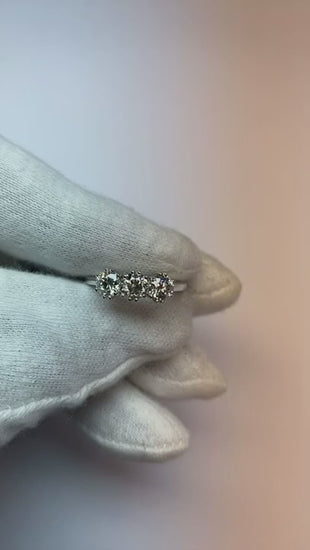Three-Stone Natural Earth Mined Diamond Ring 1.50 Carats Old Miner Cut Jewelry New