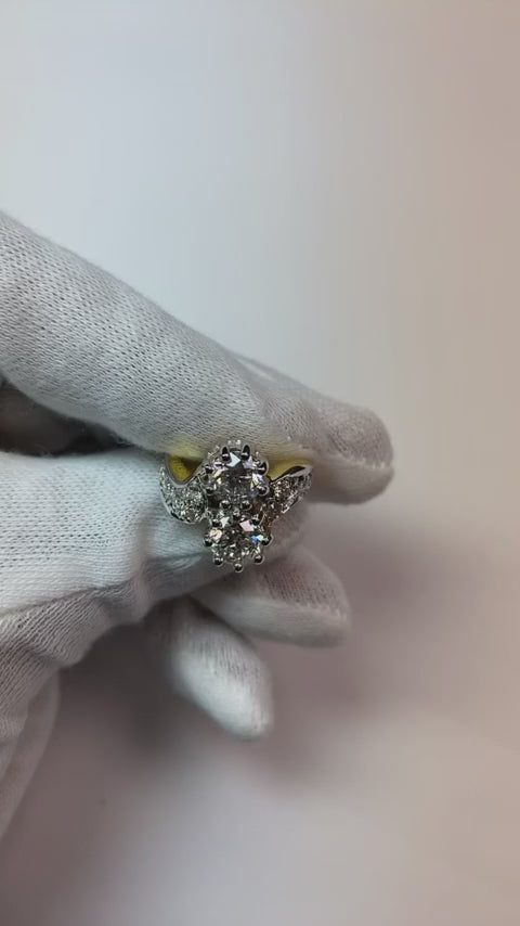 Toi Et Moi Gold Round Old Miner Genuine Natural Earth Mined Diamond Ring Two Tone 4.50 Carats