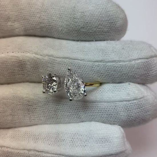 Toi et Moi Pear & Round Natural Earth Mined Diamond Engagement Ring 4 Carat Two Tone Gold 14K Jewelry