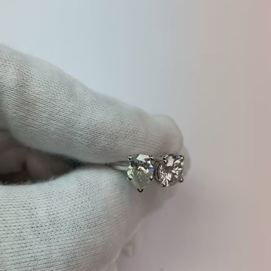 Toi et Moi Two Stone Round & Pear Natural Earth Mined Diamond Ring 4 Carats White Gold 14K