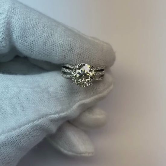Real Natural Earth Mined Diamonds Engagement Ring 5 Carats Triple Shank Pave White Gold 14K