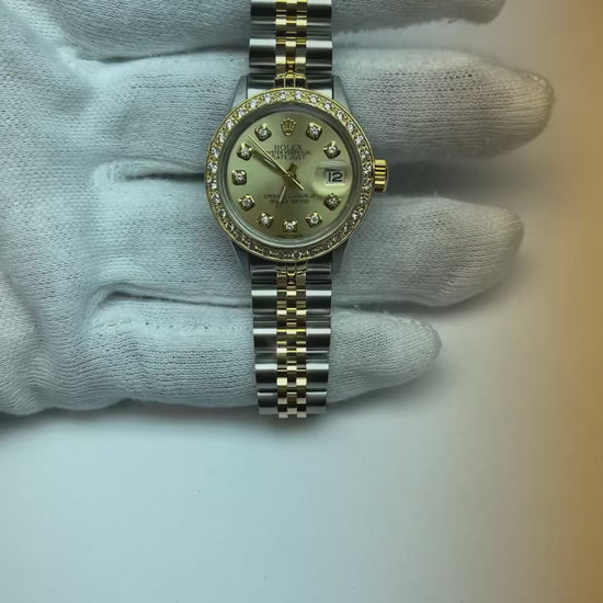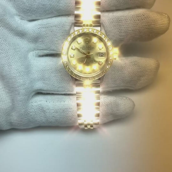 Two Tone Champagne Diamond Dial Bezel Lady Watch Rolex Datejust