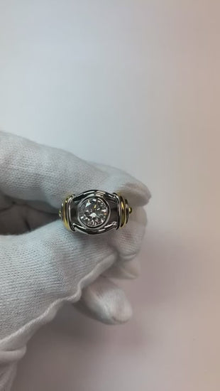 Two Tone Diamond Solitaire Mens Ring Bezel Set 2 Carats