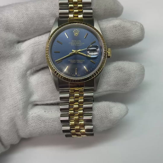 Two Tone Rolex Date Just Watch Blue Stick Dial Oyster Perpetual Jubilee QUICK SET