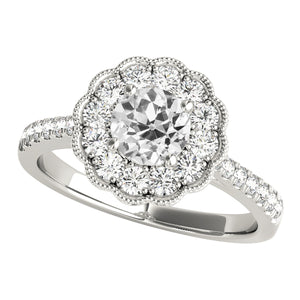 Wedding Halo Ring Round Old Mine Cut Real Natural Earth Mined Diamond Flower Style 4 Carats