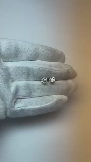 Stone Details : There is one round cut diamond approx. 1 carat (Approx. Diameter 6.3 mm) in each earring. Natural Earth Mined Diamonds.