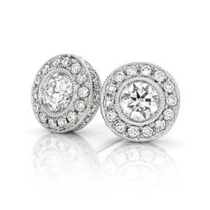 Sparkling Round Genuine Natural Earth Mined Diamond Stud Halo Earrings 2.28 Carat White Gold 14K