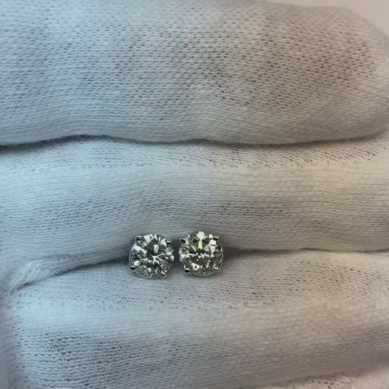 Stone Specifications : There is one diamond approx. 1.10 carats (approx. dia. 6.5 mm) in each earring. Natural earth mined diamonds.