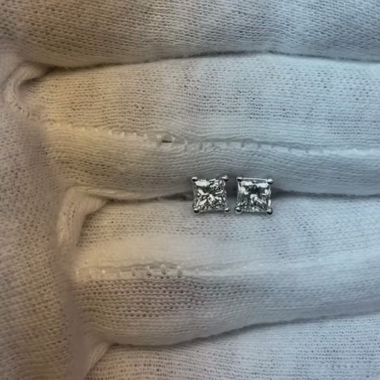 White Gold 4 Prong Set Princess Solitaire Real Natural Earth Mined Diamond Stud Earrings 14K