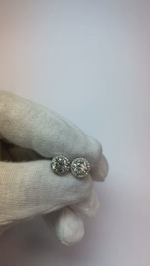 White Gold Round Natural Earth Mined Diamond Stud Halo Earring 2.80 Carats