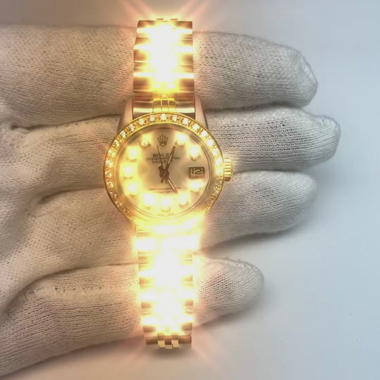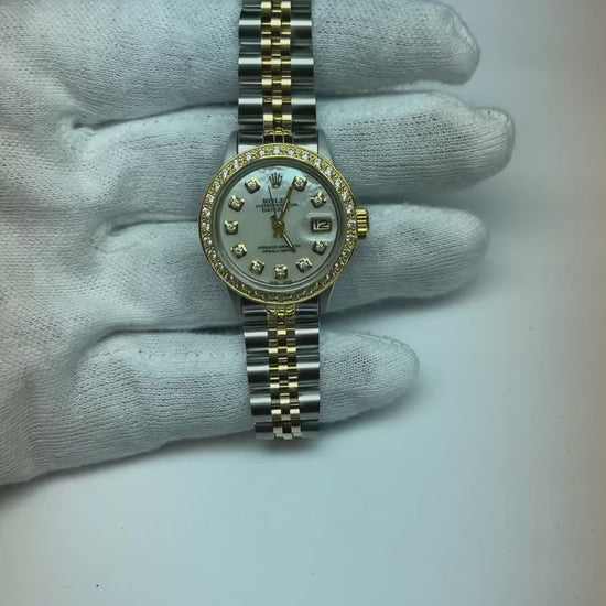 White Mop Diamond Dial Bezel Rolex Datejust Ladies Watch Ss & Gold