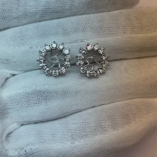 Women 1.26 Ct Round Cut Natural Earth Mined Diamonds Halo Jackets Studs Earring White Gold