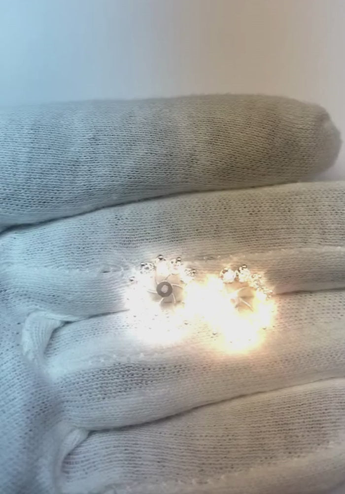 Stone Specifications : There is one diamond in the center of approx. 0.50 carats (approx. diameter 5.0 mm) and round diamonds on the side 0.13 carats in each earring. Natural earth mined diamonds.
