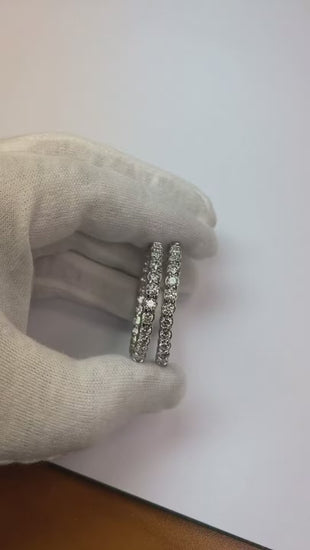 Women Hoop Earrings 7 Ct Round Cut Natural Earth Mined Diamonds White Gold 14K