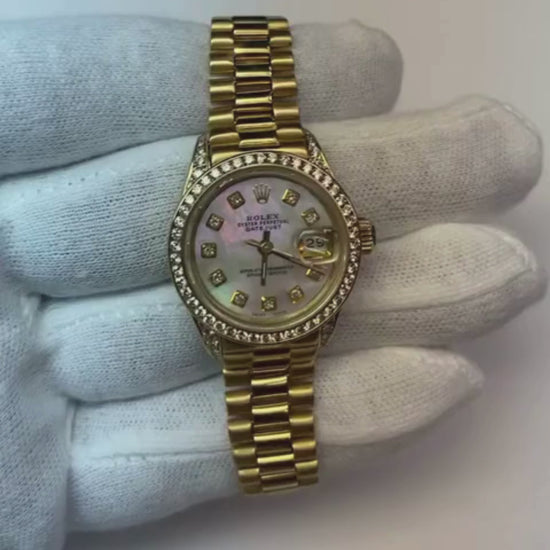 Yellow Gold Rolex Datejust Watch President Diamond Bezel Dial